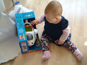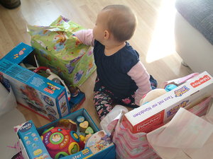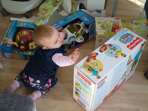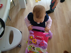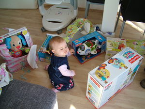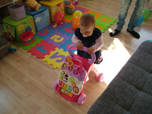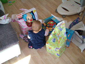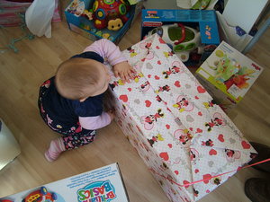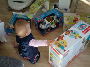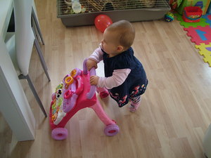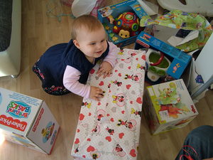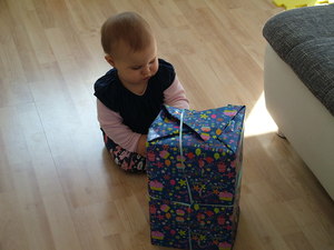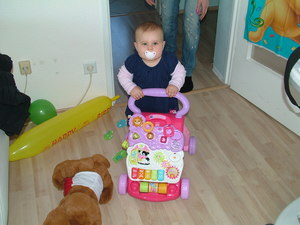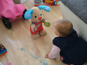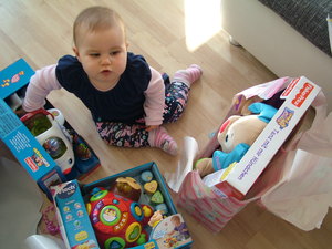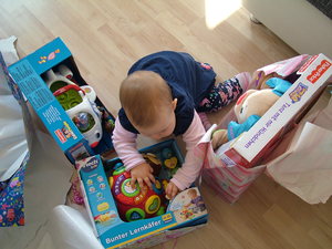 Ja, du kannst schon schnelle krabbeln und auch ein paar Worte brabbeln.